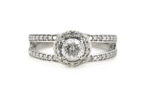 14K WHITE GOLD AND DIAMOND, HALO SPLIT BAND RING....