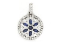 14K WHITE GOLD, BLUE SAPPHIRE AND DIAMOND,...