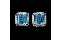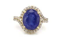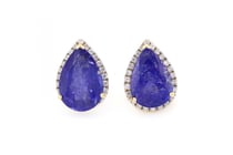 14K YELLOW GOLD, TANZANITE AND DIAMOND, HALO STUD...