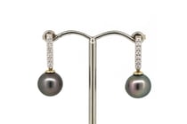 14K YELLOW GOLD, BLACK CULTURED TAHITIAN PEARL...