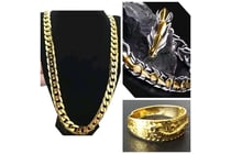 3 X GOLD STAINLESS STEEL UNISEX NECKLACE BRACELET...