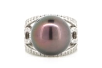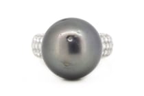 14K WHITE GOLD, BLACK CULTURED TAHITIAN PEARL...