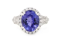 14K WHITE GOLD, TANZANITE AND DIAMOND, HALO RING....