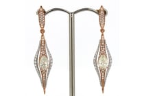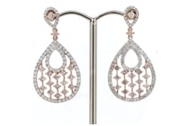 14K ROSE/WHITE GOLD AND DIAMOND, DROP EARRINGS....
