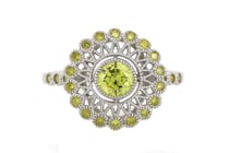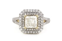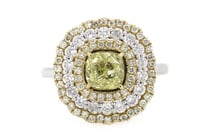 14K WHITE GOLD, FANCY YELLOW DIAMOND, TRIPLE HALO...