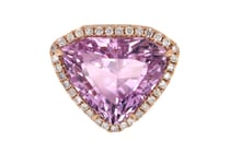 14K ROSE GOLD, 25.50CT KUNZITE AND DIAMOND, HALO...
