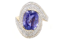 14K YELLOW GOLD, TANZANITE AND DIAMOND, STATEMENT...
