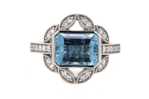 18CT WHITE GOLD AQUAMARINE AND DIAMOND RING...