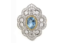 14K YELLOW/WHITE GOLD, AQUAMARINE AND DIAMOND,...