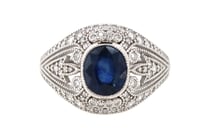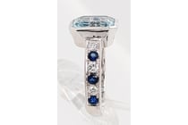 18CT WHITE GOLD AQUAMARINE, SAPPHIRE AND DIAMOND...