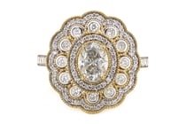 14K YELLOW GOLD AND DIAMOND, DOUBLE HALO RING....
