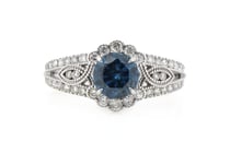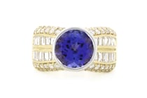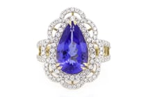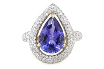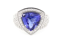 14K WHITE GOLD, TANZANITE AND DIAMOND, HALO...