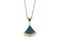 BVLGARI 18K YELLOW GOLD DIAMOND MALACHITE PENDANT...