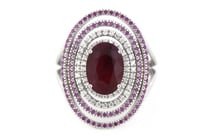 14K WHITE GOLD, RUBY, PINK SAPPHIRE AND DIAMOND,...