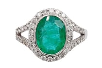 18CT WHITE GOLD EMERALD AND DIAMOND RING Total...