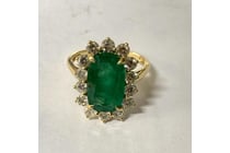18CT YELLOW GOLD EMERALD AND DIAMOND RING...