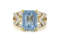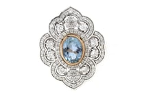 14K ROSE/WHITE GOLD, AQUAMARINE AND DIAMOND,...