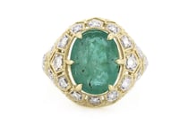 14K YELLOW GOLD, 4.17CT ZAMBIAN EMERALD AND...