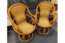 TWO SWIVEL RATTAN AND BAMBOO CHAIRS Item Size:...