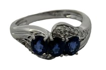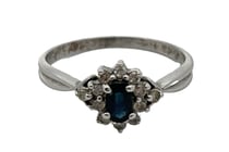 9CT WHITE GOLD BLUE SAPPHIRE & 0.12CT DIAMOND...