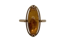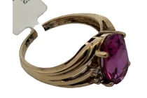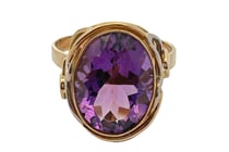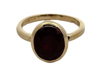 9CT YELLOW GOLD RUBY RING, OVAL CUT RUBY...