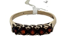9CT YELLOW GOLD GARNET RING, 5 ROUND GARNETS CLAW...