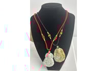 TWO-PIECE JADE PENDANT LOT, COMPRISING A PALE...