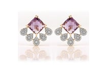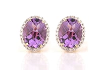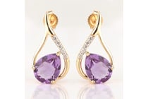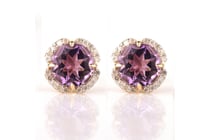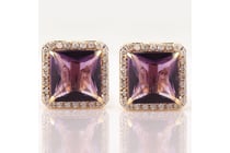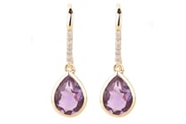 9K YELLOW GOLD, AMETHYST AND DIAMOND, EARRINGS....