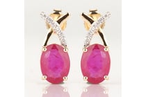 9CT YELLOW GOLD NATURAL DIAMOND & RUBY EARRINGS...