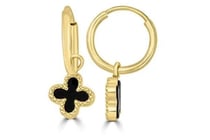 9K YELLOW GOLD BRACELETACK ONYX CLOVER HUGGIE...