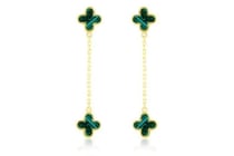 9K YELLOW GOLD MALACHITE PETAL DROP EARRINGS...