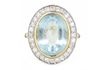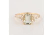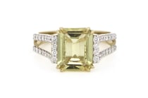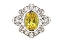 14K WHITE GOLD, GOLDEN BERYL AND DIAMOND, RING...