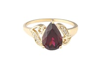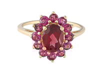 9CT YELLOW GOLD NATURAL GARNET & DIAMOND RING...