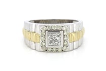 14K WHITE/YELLOW GOLD AND DIAMOND, GENTS RING...
