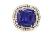 14K YELLOW GOLD, 7.24CT TANZANITE AND DIAMOND,...
