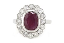 9CT YELLOW GOLD NATURAL RUBY & DIAMOND RING...