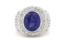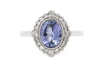14K WHITE GOLD, TANZANITE AND DIAMOND, HALO RING...