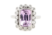 14K WHITE GOLD, KUNZITE AND DIAMOND, HALO RING...