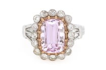 14K WHITE/ROSE GOLD, KUNZITE AND DIAMOND, RING...