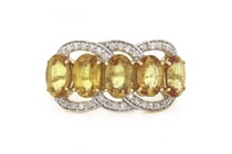 14K YELLOW GOLD, HELIODOR AND DIAMOND, DRESS RING...