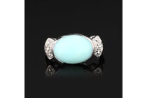 Enchanting Sea Blue Opal CAB Oval Ring -...