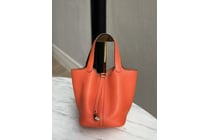 HERMES PICOTIN 22 ORANGE WITH BURGUNY LEATHER TOP...