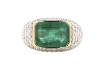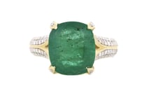 14K YELLOW GOLD/RHODIUM, EMERALD AND DIAMOND,...