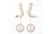 14CT ROSE GOLD PEARL AND DIAMOND DROP EARRINGS...