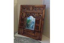 BALINESE WOOD CARVED WINDOW MIRROR 60CM X70CM -...