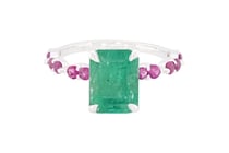 9CT WHITE GOLD EMERALD, SAPPHIRE AND DIAMOND RING...