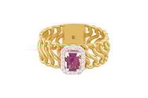 9CT YELLOW GOLD RUBELITE AND DIAMOND RING...