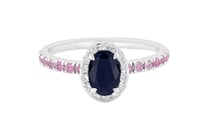 9CT WHITE GOLD SAPPHIRE RUBY AND DIAMOND RING...