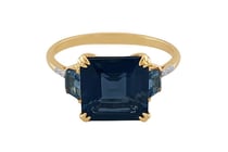 9CT YELLOW GOLD BLUE TOPAZ AND DIAMOND RING...