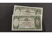 1949 2 x 1 Pound Notes (CV $1400 Ren 30th R31 )...